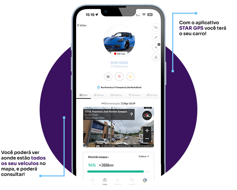 Em caso de roubo, você pode bloquear o seu veículo, através do nosso aplicativo instalado em seu smartphone.